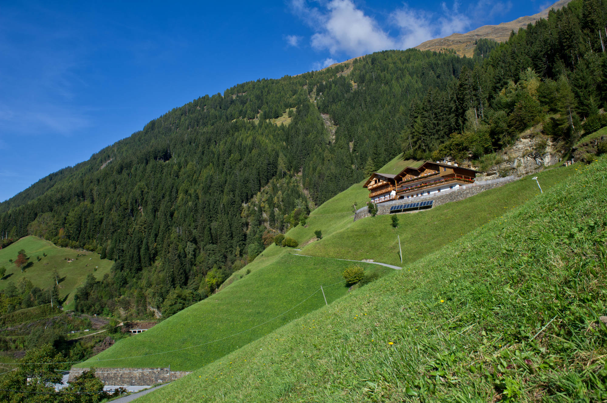 Ca. 1km nach dem Dorf (noch vor dem Tunnel) geht es rechts über eine kurze Privatstrasse (ca. 300 Meter) zum Graslhof.